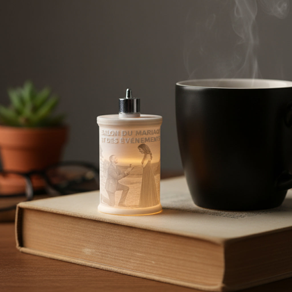 Chaque lampe peut être personnalisée (texte, logo, photo en lithophanie).